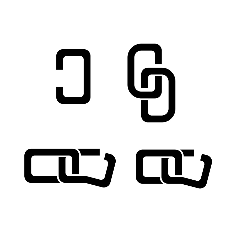 Per il logo siamo partiti dall’idea di una serratura a quella di una chiave, per poi passare al lucchetto e infine alla catena spezzata. Il tutto possibilmente unito alle sue iniziali in un monogramma.